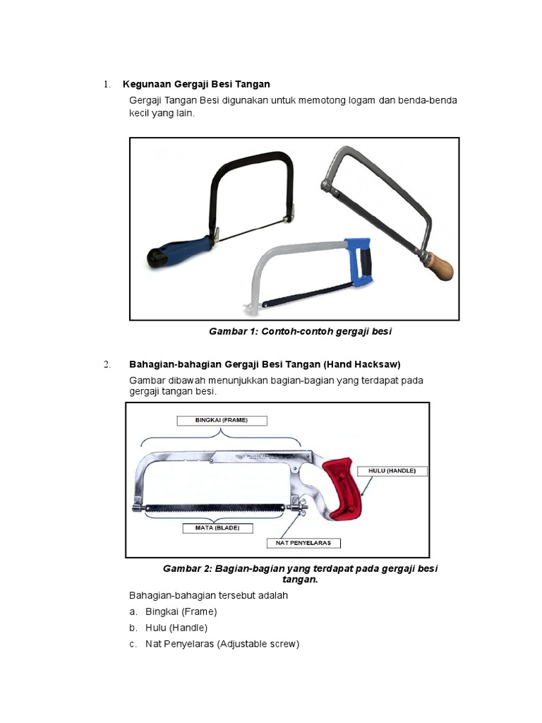 Bahagian gergaji tangan. 45 BAHAGIAN-BAHAGIAN GERGAJI BESI HULU Terdapat dua jenis iaitu. Mesti gunakan perlindungan mata. Menyatakan nama dan fungsi alatan tangan seperti gergaji tangan gergaji lengkung halus gergaji kerawang scroll saw pahatpisau pemotong perspeks pistol pengokot stapler gun dan pistol perekat panas hot glue gun dengan betul.