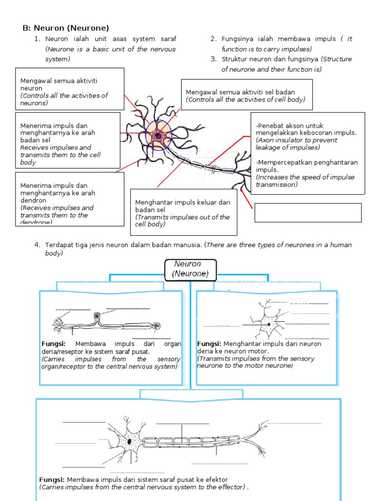 Namakan bahagian yang lain. Fungsi neuron perantaraan adalah menghantar impuls dari neuron deria ke neuron motor. 3 Neuron motor motor neurone Fungsi neuron motor adalah membawa impuls dari sistem saraf pusat ke efektor effector.