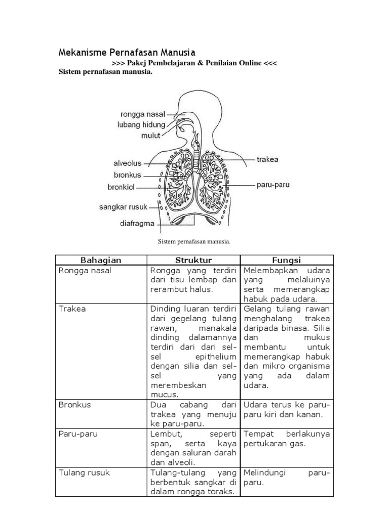 Sistem respirasi manusia menyediakan suatu kawasan untuk pertukaran gas antara darah dengan persekitaran pertukaran gas ini membolehkan pengambilan oksigen dan penyingkiran karbon dioksida perkumuhan sistem perkumuhan manusia. Labelkan bahagian a dan b Preview this quiz on Quizizz. The sistem pernafasan atau alat pernafasan terdiri daripada siri organ khusus untuk memeterai pertukaran gas yang melibatkan pengambilan oksigen dan penghapusan karbon dioksida.