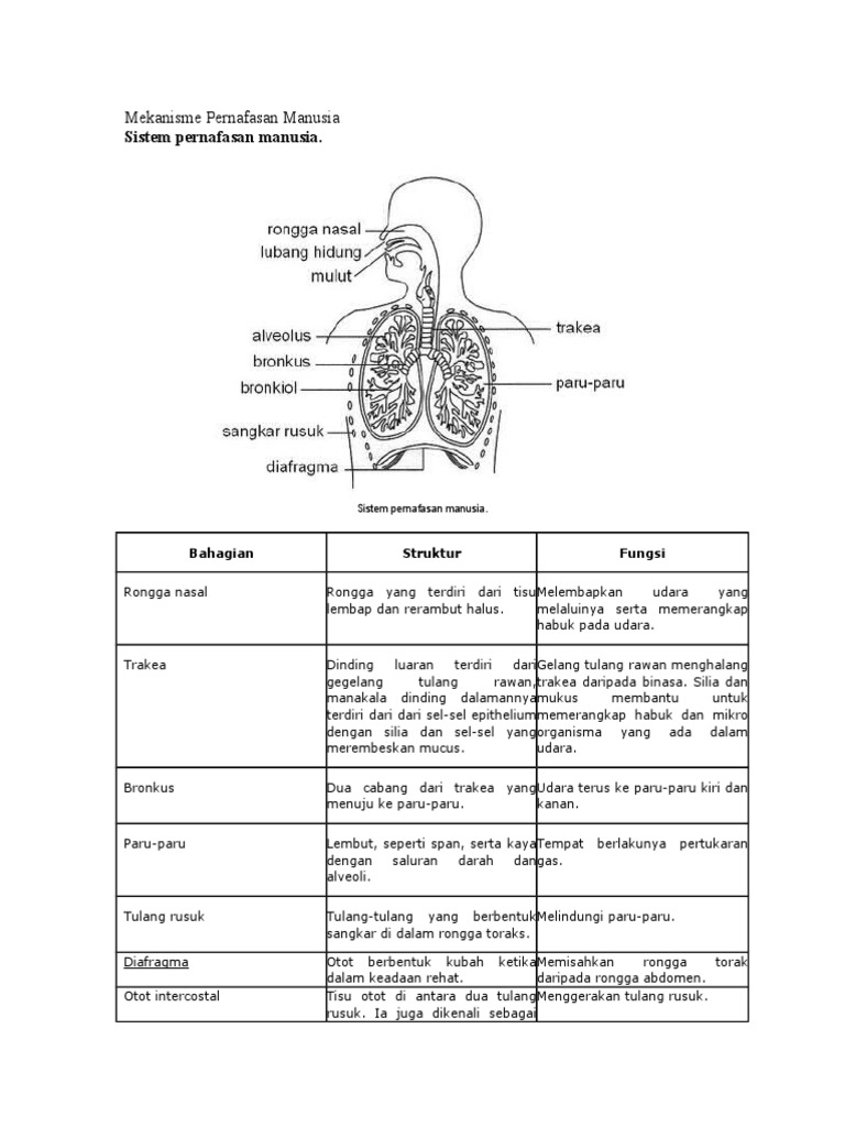 Memerihalkan dengan lakaran struktur dan fungsi sistem saraf manusia. Sistem Respirasi Manusia Pengertian Fungsi Organ Dan Gambar Pada sistem respirasi pada manusia ini sama juga dengan halnya seperti sistem pernapasan pada manusia yang merupakan proses bernapas yang dimulai dari pengambilan oksigen yang disalurkan ke bagian dalam tubuh sampai pengeluaran karbondioksida. 1udara memasuki sistem respirasi melalui rongga nasal.