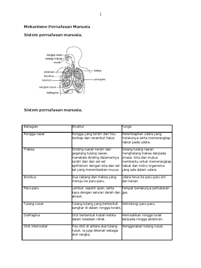 Mekanisme Pernafasan Manusia Nota