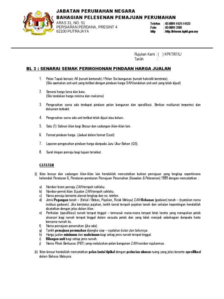 Jabatan Perumahan Negara Aras 30-38 No 51 Persiaran Perdana Presint 4 Pusat Pentadbiran Kerajaan Persekutuan 62100 Putrajaya. Bahagian Perhubungan Awam Teknologi Maklumat dan Penyelidikan. Bahagian Pelesenan Pemajuan Perumahan Jabatan Perumahan Negara Kementerian Perumahan Kerajaan Tempatan Aras 31 No51 Persiaran Perdana Presint 4 Pusat Pentadbiran Kerajaan Persekutuan 62100 Putrajaya MALAYSIA Tel.