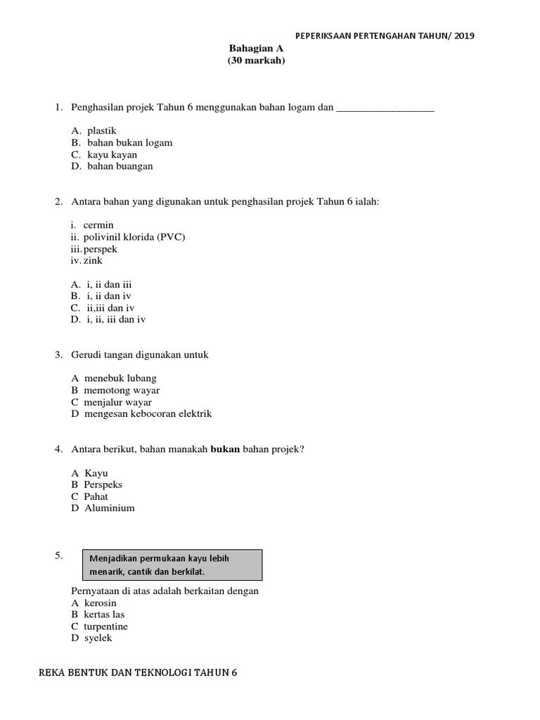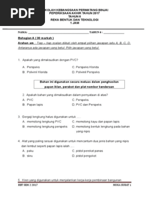 Peperiksaan Akhir Tahun Reka Bentuk Teknologi Tahun 6 Sumber Pendidikan