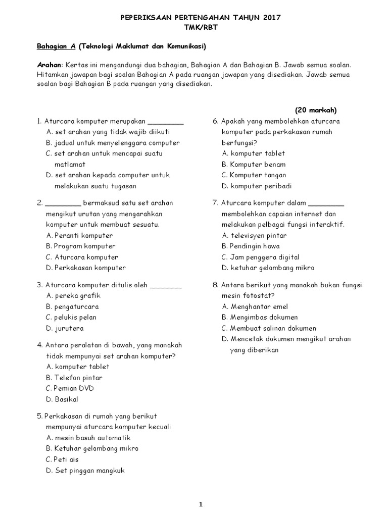 Arahan Am Tiap Tiap Soalan Diikuti Oleh Empat Jawapan Iaitu A B C D Pdf Free Download