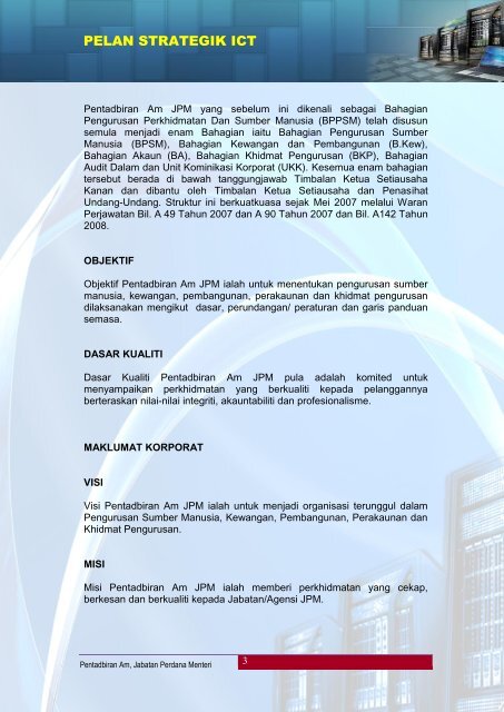 Jabatan Perdana Menteri yang sebelum ini dikenali sebagai Pentadbiran Am JPM telah disusun semula menjadi 12 bahagian iaitu Bahagian Sumber Manusia Bahagian Kewangan Bahagian Pembangunan Bahagian Akaun Bahagian Khidmat Pengurusan Bahagian Audit Dalam Bahagian Teknologi Maklumat Bahagian Perolehan Bahagian Dasar Perancangan Strategik Unit Komunikasi Korporat Pejabat Penasihat. Menentukan Wang Akaun Amanah Kumpulan Wang Amanah dan Deposit Diurus Dengan. 51 Persiaran Perdana Presint 4 62100 Putrajaya 03-88914602.