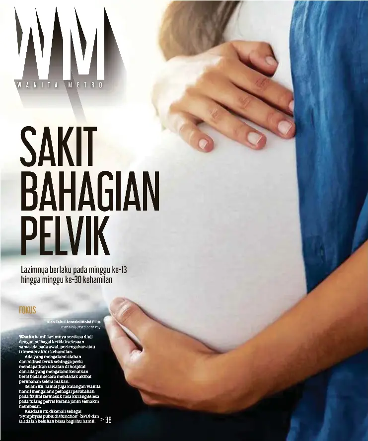 Sejak tu saya x boleh angkat kaki sebelah terasa sakit di tulang kemaluan. Biasanya keluhan sakit perut dirasakan di sebelah kiri tapi dapat terjadi di sebelah kanan terutama pada orang-orang berdarah Asia. Saya mula sakit pelvis dan bahagian kelengkang pada minggu ke 35 kehamilan.